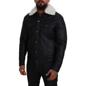 سترة بومبر جلدية أنيقة باللون الأسود من دولتشي آند غابانا