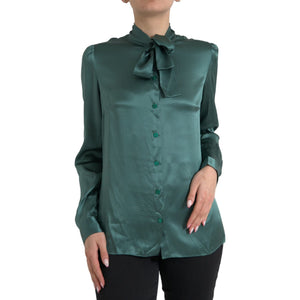 بلوزة أنيقة من الحرير باللون الأخضر الداكن من دولتشي آند غابانا