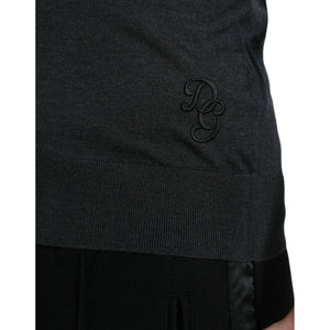 تي شيرت دولتشي آند غابانا الأنيق من الحرير بياقة دائرية باللون الرمادي الداكن