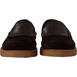 حذاء دولتشي آند غابانا الأنيق المصنوع من جلد الغزال بنقشة جلد التمساح باللون البني