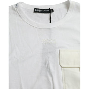 تي شيرت دولتشي آند غابانا الأنيق المصنوع من القطن باللون الأبيض بياقة دائرية