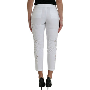 بنطلون دولتشي آند غابانا الأنيق باللون الأبيض ذو الخصر المتوسط
