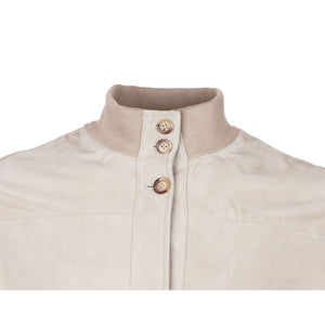 Embrace the essence of suave Italian elegance with Emilio Romanelli’s calfskin suede bomber jacket. Crafted with precision, it features a polished button closure and twin front pockets that exude a classic sophistication. The ribbed cuffs, collar, and hem provide a snug, comfortable fit, while the lined interior promises a luxe experience. In a versatile beige hue, it’s a timeless addition to the contemporary man’s wardrobe, melding tradition with a modern edge.