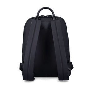 black all-around zip fastening front zip fastening logo plaque two adjustable shoulder straps Logo nylon backpack Size and Fit - Width 25.5 cm, Height 33 cm, Depth 11.5 cm, Handle 10 cm, Shoulder strap 70 cm.