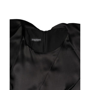 Emporio Armani Black Satin Long Sleeves Wrap Sheath Mini Dress