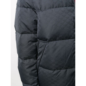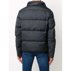 dark blue padded design front zip fastening front press-stud fastening long sleeves two side slit pockets Nylon short down jacket