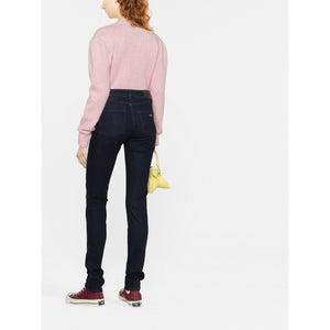 High-waisted slim-cut trousers from EMPORIO ARMANI featuring front button and zip fastening, classic five pockets, indigo blue, stretch-cotton, slim cut and belt loops. Denim cotton jeans Size and Fit - This piece fits true to size. We recommend you get your regular size. Model is 1,75m / 5ft 8in wearing size 27 (WAIST CM)