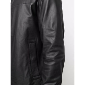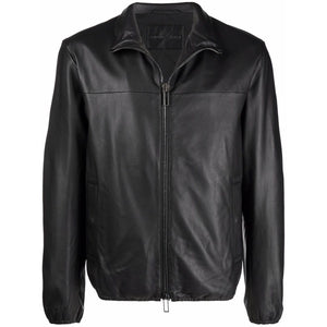 black lamb skin spread collar front zip fastening long sleeves two front welt pockets Leather zipped jacket