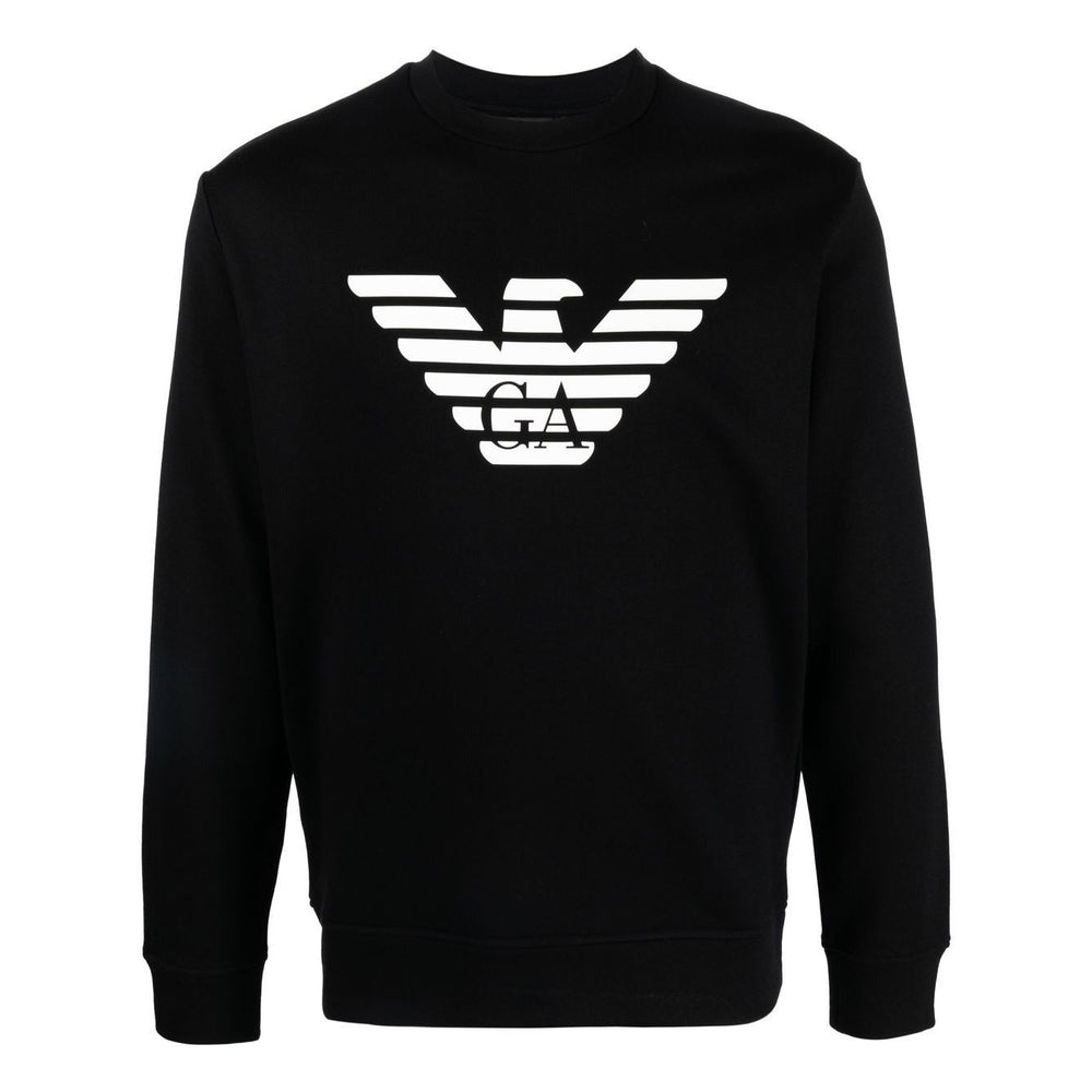 Logo-print cotton sweatshirt from EMPORIO ARMANI featuring black, cotton, modal blend, logo print at the chest, crew neck, long sleeves and straight hem. Conscious: This item contains at least 50% low-impact materials, which are certified or widely recognised as having a lower environmental impact.. Logo cotton sweatshirt Size and Fit - This piece fits true to size. We recommend you get your regular size. Model is 1,84m / 6ft 1in wearing size M