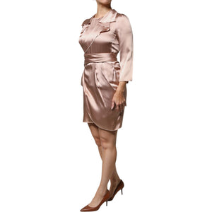 Emporio Armani Pink Satin Long Sleeves Sheath Wrap Mini Dress