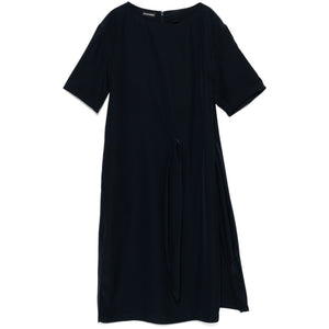 navy blue concealed rear hook and zip fastening side zip fastening side slit crew neck Side-tie mini dress Size and Fit - This piece fits true to size. We recommend you get your regular size. Model is 1,75m / 5ft 8in wearing size 40 (IT)