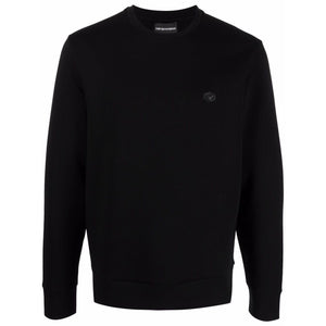 black stretch-cotton blend logo patch at the chest crew neck long sleeves elasticated cuffs elasticated hem Cotton crewneck sweatshirt
