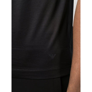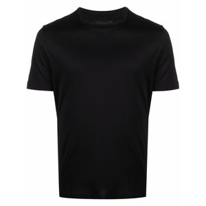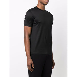 black round neck short sleeves logo patch to the front straight hem Logo cotton blend t-shirt