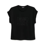 black crew neck short sleeves turn-up cuffs straight hem Logo t-shirt Size and Fit - This piece fits true to size. We recommend you get your regular size. Model is 1,75m / 5ft 8in wearing size S