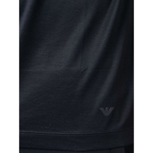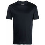 navy blue round neck short sleeves logo patch to the front straight hem Logo cotton blend t-shirt