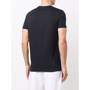 navy blue cotton short sleeves round neck logo patch at the chest straight hem Logo cotton t-shirt