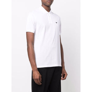 white cotton embroidered logo at the chest classic collar front button fastening short sleeves Cotton polo shirt