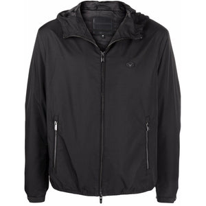 Black logo patch to the front classic hood front zip fastening long sleeves two side slit pockets straight hem. Hooded blouson jacket Size and Fit - This piece fits true to size. We recommend you get your regular size. Model is 1,84m / 6ft 1in wearing size 48 (IT)