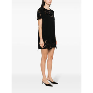 black cotton blend shift style cut-out detailing embroidered motif concealed rear zip fastening short sleeves thigh-length Embroidered cotton short dress Size and Fit - This piece fits true to size. We recommend you get your regular size. Model is 1,75m / 5ft 8in wearing size 40 (IT)
