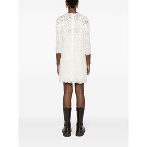 guipure lace shift minidress from ERMANNO SCERVINO featuring chalk white, guipure lace, scallop edge, shift style, round neck, rear zip fastening, three-quarter length sleeves, internal slip dress and thigh-length. Wool blend short dress Size and Fit - This piece fits true to size. We recommend you get your regular size. Model is 1,75m / 5ft 8in wearing size 40 (IT)