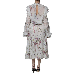 Ermanno Scervino White Floral Ruffles Lace Long Sleeves Maxi Dress