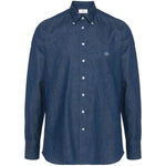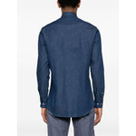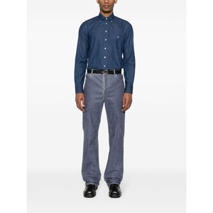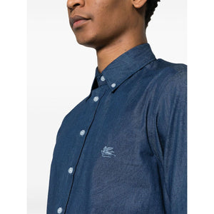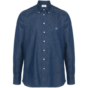 indigo blue cotton paisley print embroidered logo at the chest signature Pegaso motif button-down collar front button fastening long sleeves rear curved hem Logo cotton shirt Size and Fit - This piece fits true to size. We recommend you get your regular size. Model is 1,84m / 6ft 1in wearing size 39 (COLLAR CM)