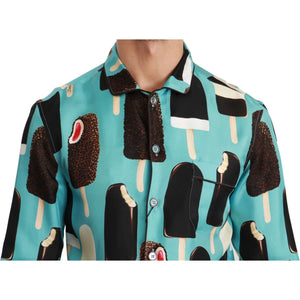 قميص دولتشي آند غابانا الحصري بطبعة الآيس كريم من مزيج الحرير