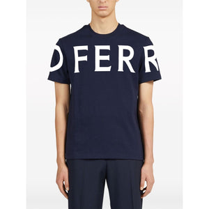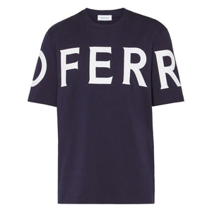 navy blue/white cotton jersey texture all-over logo print crew neck short sleeves straight hem Logo cotton t-shirt Size and Fit - This piece fits true to size. We recommend you get your regular size. Model is 1,84m / 6ft 1in wearing size M
