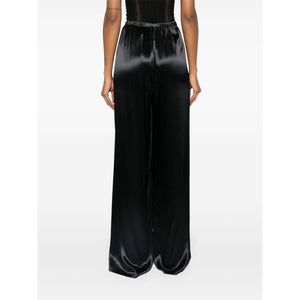 black satin finish crepe texture high-waisted elasticated waistband wide leg straight hem long length Satin wide leg trousers Size and Fit - This piece fits true to size. We recommend you get your regular size. Model is 1,75m / 5ft 8in wearing size 40 (IT)