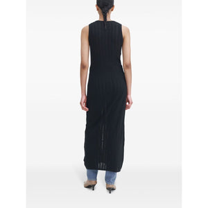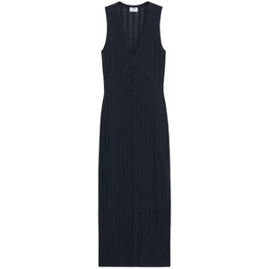 black organic cotton fine knit front button fastening V-neck sleeveless straight hem mid-length Organic cotton long dress Size and Fit - This piece fits true to size. We recommend you get your regular size. Model is 1,75m / 5ft 8in wearing size S