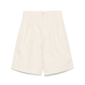 light beige front button and zip fastening belt loops two side slash pockets two rear welt pockets Linen and cotton blend shorts Size and Fit - This piece fits true to size. We recommend you get your regular size. Model is 1,75m / 5ft 8in wearing size 36 (FR)