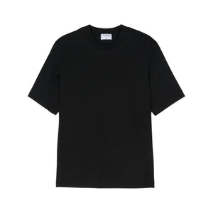 black organic cotton jersey texture mock neck short sleeves straight hem Cotton t-shirt Size and Fit - This piece fits true to size. We recommend you get your regular size. Model is 1,75m / 5ft 8in wearing size S