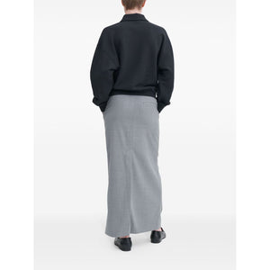 black organic cotton blend jersey texture front button placket polo collar drop shoulder long sleeves ribbed cuffs and hem Long sleeves polo shirt Size and Fit - This piece fits true to size. We recommend you get your regular size. Model is 1,75m / 5ft 8in wearing size S