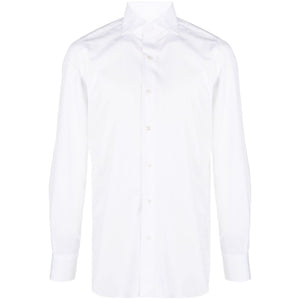 white cotton cutaway collar front button fastening long sleeves buttoned cuffs curved hem Napoli cotton shirt