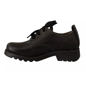 FLY LONDON Black Leather Low Top Lace Up Women Oxford Shoes
