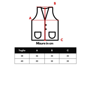 Gold color, front fastening with plexi-covered buttons with logo, pocket closed with snap button on the side, regular fit.