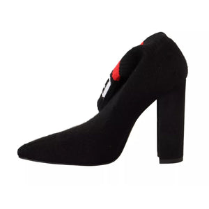 GCDS Black Suede Logo Socks Block Heel Ankle Boots Shoes