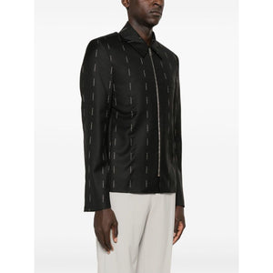 logo-print shirt jacket from Givenchy featuring black, all-over logo print, classic collar, front zip fastening, long sleeves, chest welt pocket and straight hem. Wool zipped jacket Size and Fit - This piece fits true to size. We recommend you get your regular size. Model is 1,84m / 6ft 1in wearing size 48 (IT)