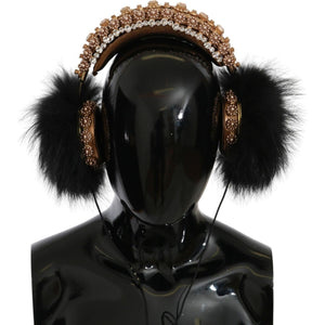 سماعات رأس دولتشي آند غابانا باللون الذهبي الأسود المزينة بالكريستال