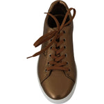 استمتع بالفخامة مع هذا الحذاء الرياضي المذهل المصنوع من الجلد باللون الذهبي المعدني من Dolce & Gabbana . مثالية للأشخاص الذين يواكبون الموضة، تتميز هذه الأحذية الرياضية بلمسة نهائية ذهبية أنيقة شديدة اللمعان والتي من المؤكد أنها ستلفت الأنظار. مصنوع من الجلد الفاخر بنسبة 100% مع نعل مطاطي متين، هذه الأحذية تجمع بين الراحة والأناقة التي لا مثيل لها. مكتملة بتفاصيل الشعار المميزة ومصنوعة بطريقة صحيحة في إيطاليا، فهي شعار حقيقي لحرفية المصمم.