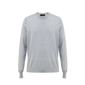 Crewneck Sweater in Pastel Blue Gran Sasso. Round neckline, long sleeves, knitted waistband, basic model.