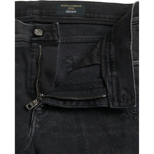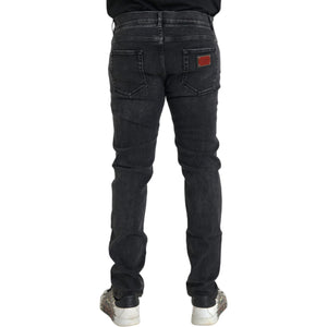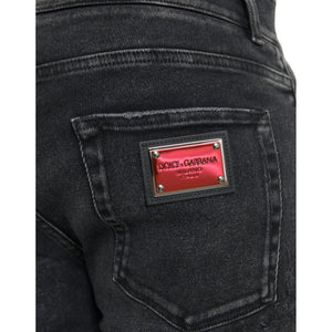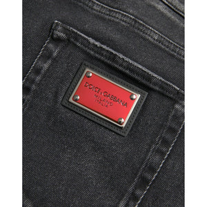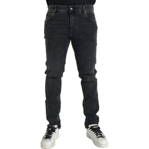 بنطلون جينز ضيق من القطن المرن باللون الرمادي من Dolce & Gabbana مع شعار