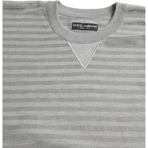 بلوفر دولتشي آند غابانا الأنيق ذو الياقة المستديرة من الحرير المخطط باللون الرمادي