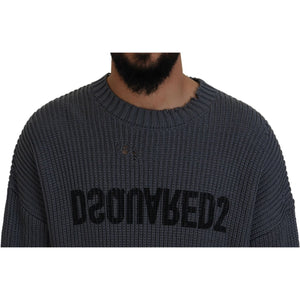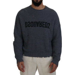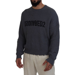 سترة رجالية محبوكة ممزقة من Dsquared² باللون الرمادي