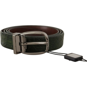 Dolce & Gabbana Green Exotic Leather Silver Buckle Belt