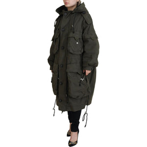 جاكيت باركا طويل بغطاء رأس وسحّاب كامل من Dsquared² باللون الأخضر