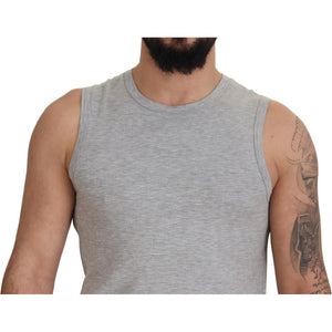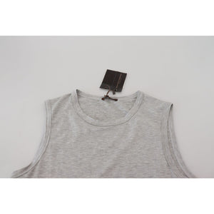 ارتدي ملابسك الكاجوال مع هذا التي شيرت المذهل بدون أكمام الأصلي 100% من Ermanno Scervino. مزيج مثالي من الراحة والأزياء الراقية، هذا التيشيرت الرمادي مثالي لمظهر أنيق ومريح. يتميز بتصميم أنيق بياقة دائرية مع تفاصيل شعار دقيقة، وهو جاهز للارتقاء بأسلوبك اليومي.