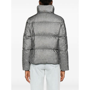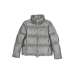 grey quilted design high collar zip fastening long sleeves straight hem Velvet short down jacket