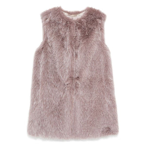 grey faux fur sleeveless round neck straight hem Faux fur vest