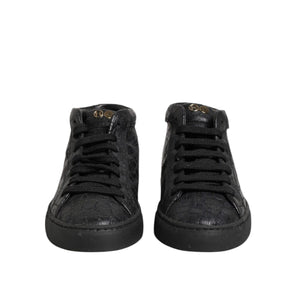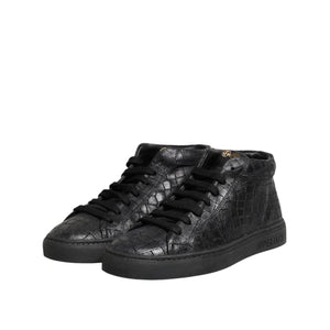HIDE & JACK Black Leather Lace Up Mid Top Sneakers Shoes